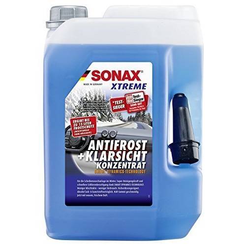 Beim Scheibenfrostschutz-Konzentrat wird Ihnen in unverdünnter Form meistens ein Frostschutz geboten, der dem Wasser einen sehr niedrigen Gefrierpunkt verschafft. Das enthaltene Glykol, das vor dem Erstarren der Flüssigkeit schützt, ist hier stark konzentriert enthalten. Die Hersteller empfehlen aber, solches Scheibenreinigungsmittel nicht pur in die Scheibenwaschanlage zu geben. Wenn Sie nicht gerade in Sibirien mit dem Fahrzeug unterwegs sind, braucht es keinen Frostschutz für Scheibenwaschanlagen, der das Scheibenwasser bis zu teils -60 °C flüssig hält.