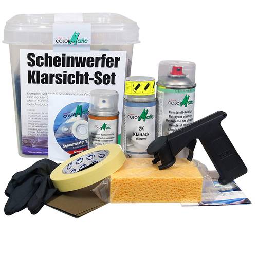 Einige wenige Hersteller wie Colormatic setzen bei der Scheinwerfer-Aufbereitung auf Lack. Diesen sprühen Sie nach dem Schleifen auf die Scheinwerfer auf. Lacke sind aber eher die Ausnahme, sodass sie aus Sicht der Vergleich.org-Experten nicht zu den Basiskomponenten zu zählen sind.