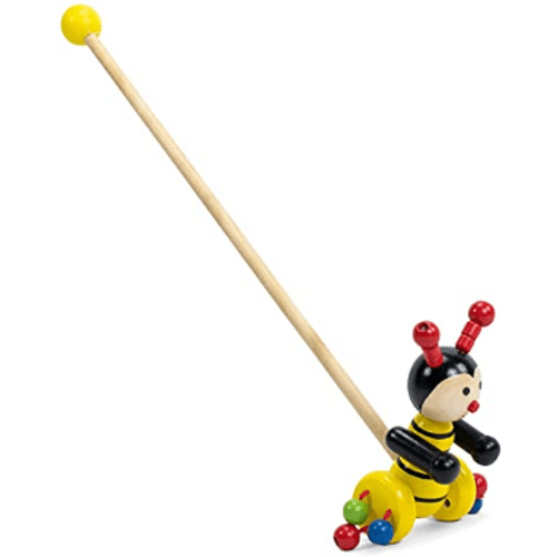 Schiebetiere oder Schiebefiguren bestehen in der Regel aus einer beweglichen Figur und einem langen Stab, an dem sich Kinder festhalten und die Schiebetiere vor sich herschieben können. Entweder auf Rädern oder mit kleinen Füßchen unterstützen die Schiebetiere kleine Kinder spielerisch beim Laufenlernen und geben zusätzliche Sicherheit bei den ersten wackligen Schritten.