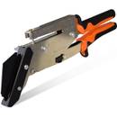 Im Vergleich zur klassischen Schieferschere erinnert die Schlag-Schieferschere eher an einen Fliesenschneider im Miniaturformat. Die Sondermodelle gibt es beispielsweise von MyMAW und von Picard. Für den Einsatz auf dem Dach sind sie jedoch eher weniger geeignet, denn Sie müssen die Schlag-Schieferschere auf einen eben Untergrund legen, um dann die Schneide von oben auf die Platte zu drücken. Wer mehrere Faserzement- oder Schieferplatten vorschneiden möchte, kann dies mit einer Schlag-Schieferschere am Boden tun.