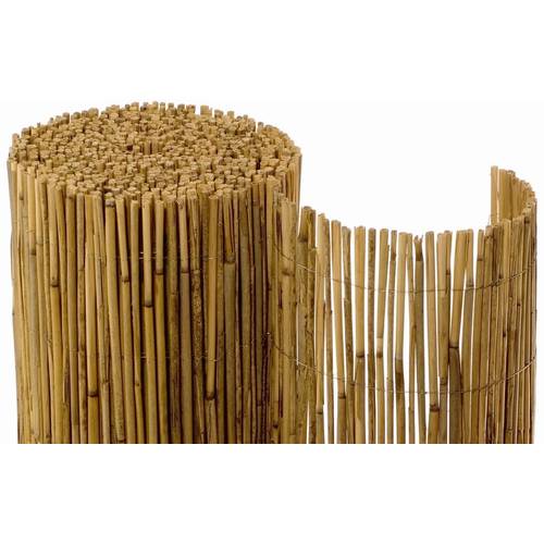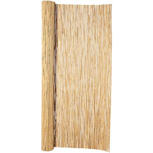 Auf diesem Bild sehen wir OBI-Schilfrohrmatten, wobei eine dieser Rollen 90 x 600 cm misst.
