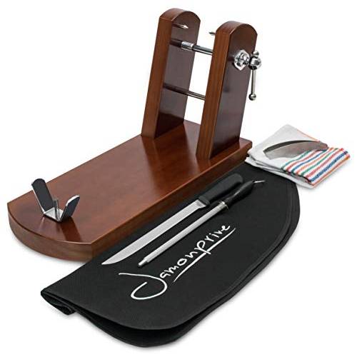 Einige Modelle bieten eine drehbare Halterung, mit der der Schinken in verschiedene Positionen gedreht werden kann, um das Schneiden zu erleichtern. Nachdem der Schinken gut fixiert ist, wird er mit einem Schutztuch abgedeckt, um ihn frisch zu halten. Mit einem speziellen Schinkenmesser schneidet man dann dünne Scheiben vom oberen Ende in Richtung des Knochenansatzes.