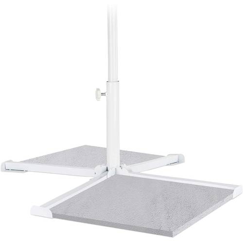 Wasser, Kies und feiner Sand eignen sich besonders gut zum Auffüllen des Sockels. Durch dieses zusätzliche Gewicht wird der Gesamtaufbau sehr stabil und ist gut gegen Witterungseinflüsse wie Wind oder Regen gewappnet. Soll der Schirmständer weiß sein und vor allem bleiben, raten wir Ihnen zu Wasser als Füllmaterial um keine unnötigen Verschmutzungen zu verursachen.