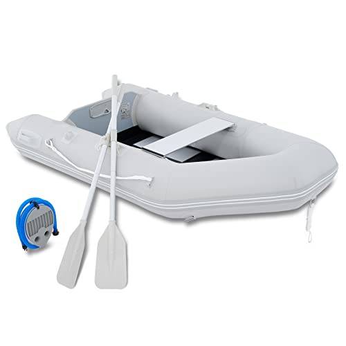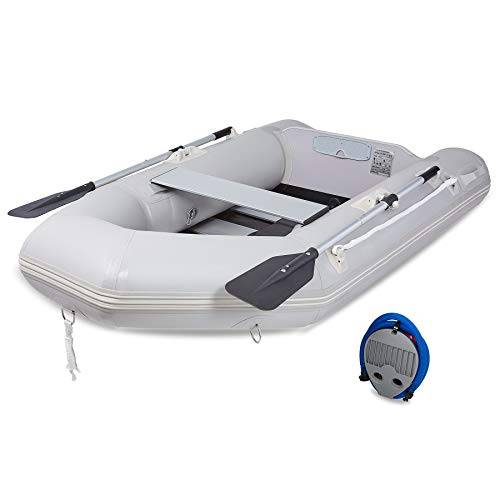 Kleinere Boote sind meist entweder mit einem aufrollbaren Lattenrost oder wie die Modelle aus unserem Schlauchboot Vergleich mit einem aufblasbaren Boden ausgestattet. Mit klein sind hier demnach Beiboote, Badeboote, Angelboote oder Paddelboote gemeint. Sie sind sehr schnell aufzubauen und besitzen ein kleines Packmaß sowie ein geringes Gewicht. Leider lassen diese Boote nur eine sehr geringe Motorisierung zu. Die Klassiker unter den Schlauchbooten sind mit Einlegeböden ausgestattet. Diese bestehen aus Aluminium oder Kunststoff, wobei wir Aluminium nicht unbedingt zum Angel Sport empfehlen, da die Geräusche, die das Material erzeugt, die Fische sehr schnell vertreibt.