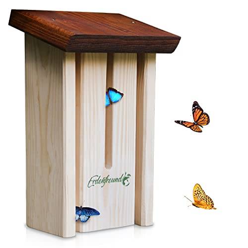 Einige Schmetterlingshaus-Tests im Internet weisen darauf hin, dass breite und große Schlitze wichtig sind, da somit auch größere Schmetterlingsarten den Schutz in Anspruch nehmen können. Das beste Schmetterlingshaus besteht aus robustem und spreiselfreiem Holz, an dem die Schmetterlinge nicht ihre Flügel verletzen können.