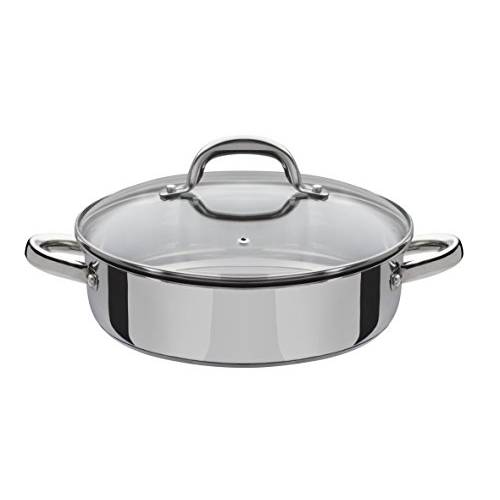 Die meisten Edelstahl-Schmorpfannen werden aus rostfreiem 18/10-Edelstahl hergestellt. Der Boden sollte zudem idealerweise mit Kupfer oder Aluminium ausgestattet sein, da diese Materialien sehr gute Wärmeleiter sind, was bei Edelstahl an sich nicht der Fall ist.
