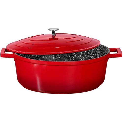 Wenn Sie auf der Suche nach dem besten Schmortopf für Ihre Küche sind, werden Sie sich bald auch Gedanken über das Material des Schmortopfes machen. Die besten Schmortöpfe sind aus Gusseisen gefertigt, da dieses Material besonders hitzebeständig und robust ist. Einige Hersteller beschichten das Eisen auch noch mit Emaille. Emaille oder auch Email geschrieben ist Schmelzglas, das meist aus Silikaten oder Oxiden besteht und hauptsächlich für ein optisch schöneres Design des Schmortopfes zuständig ist. Da der Schmortopf oft dekorativ auf dem Tisch platziert wird, spielt auch das Aussehen des Topfes eine große Rolle bei der Kaufentscheidung.
