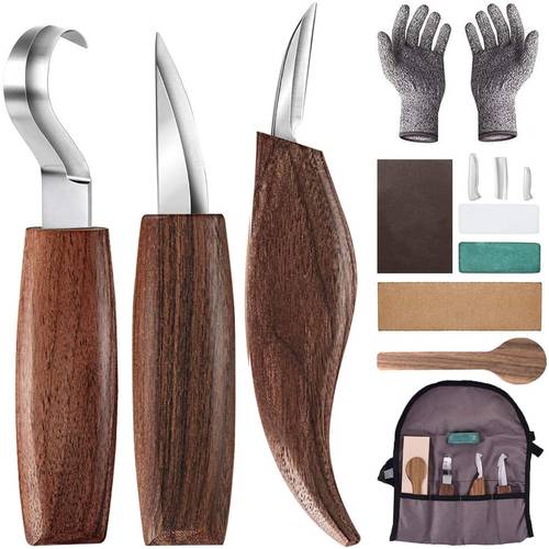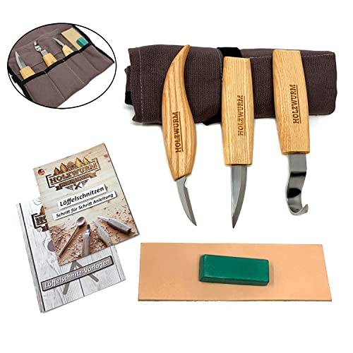 Mit einem gebogenen Hakenmesser können Sie Holz aushöhlen, um zum Beispiel Löffel herzustellen. Gerade Schnitzmesser mit großer Klinge sind für das Schnitzen von langen Flächen gedacht.