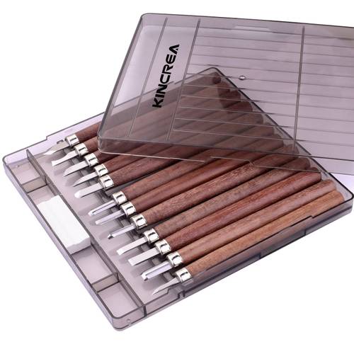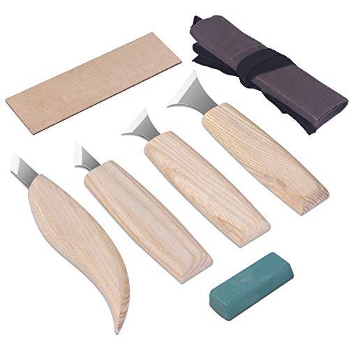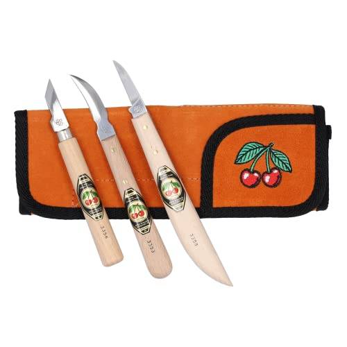 In den besten Schnitzeisen-Sets sind Messer mit verschiedenen Klingenformen für unterschiedliche Kerbungen enthalten. Die meisten Sets verfügen über mindestens drei Messer.