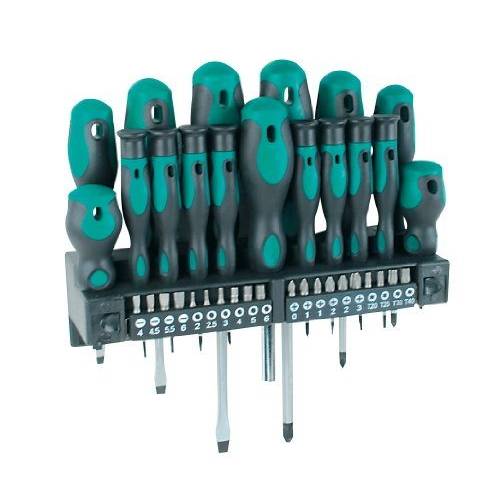 Häufig werden Sets in entsprechenden Halterungen angeboten, die entweder an der Wand angebracht werden können oder in Form eines Koffers mitgeliefert werden. Darin lassen sich die einzelnen Schraubendreher übersichtlich fixieren.