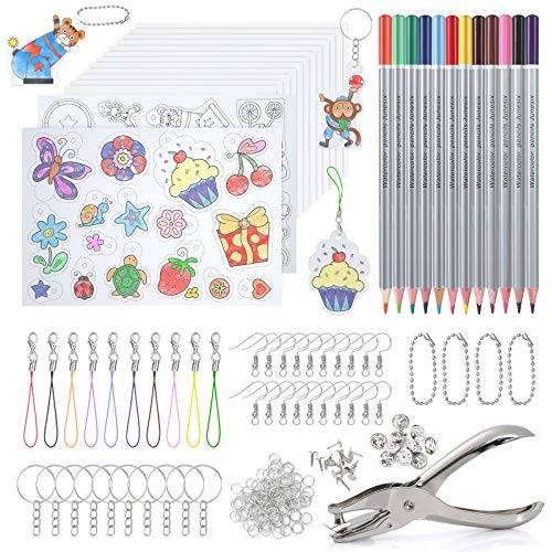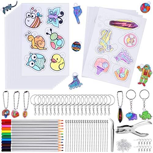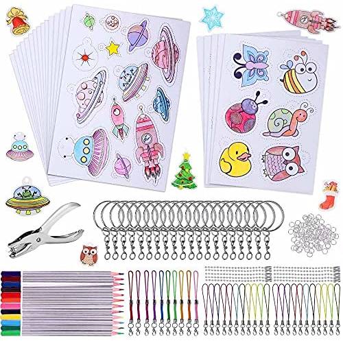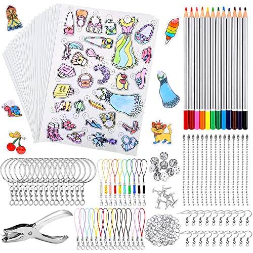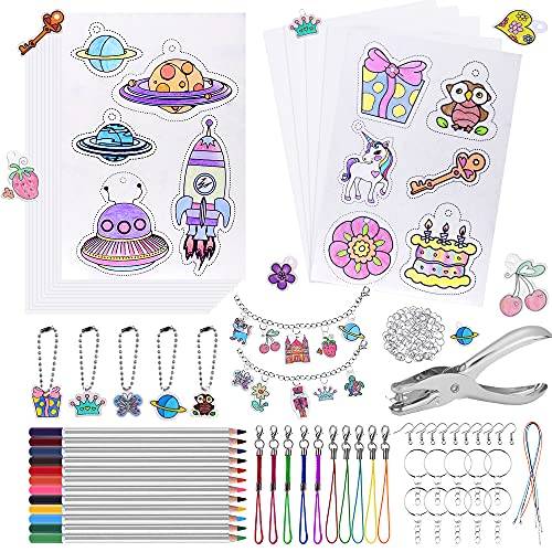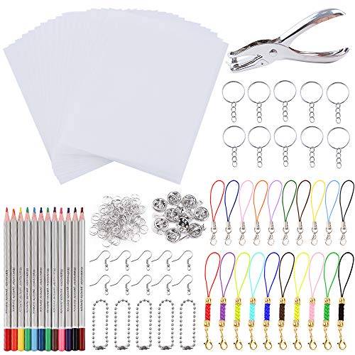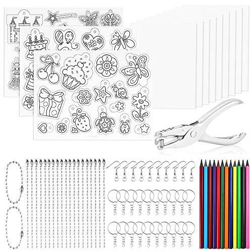 Eine sehr beliebte Kreatividee ist das Basteln von Schlüsselanhängern aus Schrumpffolie. Hierfür stellen viele Sets das entsprechende Zubehör bereit. Neben den Materialien für den Anhänger ist auch eine kleine Lochzange nützlich, um ein sauberes Loch in die Folie stanzen zu können.
