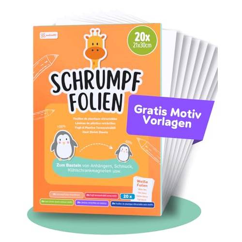 Tipp: Es gibt auch viele saisonale Schrumpffolien-Sets. Diese sind beispielsweise speziell für Ostern oder Halloween gedacht. Empfehlenswert ist aber auch ein Bastelset mit Schrumpffolie für Weihnachten, um kreative Geschenke oder originellen Christbaumschmuck herzustellen.