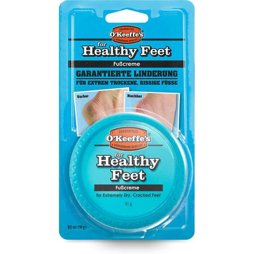 Platz 1 | O'Keeffe's Healthy Feet | ca. 7 € | trockene Haut mit Hornhaut und Schrunden | regelmäßig morgens und abends | ||