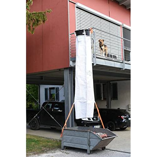 Eine Schuttrutsche, auch als Abtransportrutsche bezeichnet, wird hauptsächlich auf Baustellen verwendet, um überschüssigen Schutt und Abraum von einer höhergelegenen Stelle zu einer tiefer gelegenen Stelle zu transportieren. So können Sie die Schuttrutsche durchs Fenster hängen und der Schutt geht unten in einen Container. Wenn Ihr Container voll mit Schutt ist, kann er zu der Schuttentsorgung gebracht werden.