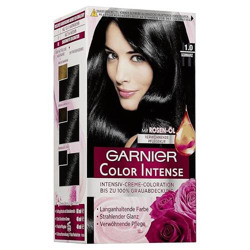 Die schwarze Haarfarbe Color Intense von Garnier hat laut Hersteller eine intensive Farbe sowie einen langanhaltenden Glanz für Ihre Haare. Gut finden wir die Grauhaarabdeckung und dass Handschuhe zum Lieferumfang dazugehören.
