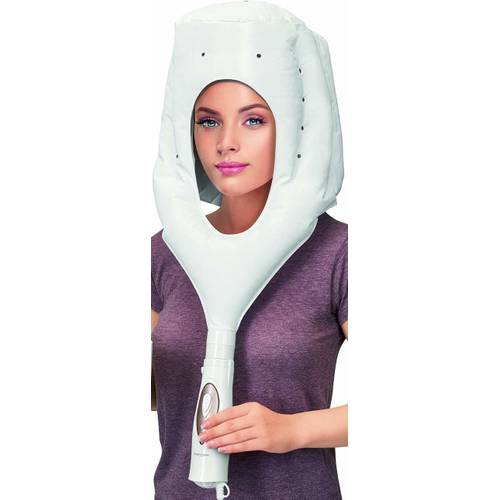Die Haube ermöglicht etwas mehr Bewegungsfreiheit als die reguläre Trockenhaube. Mit der Schwebehaube kann man sich bequem auf dem Sofa die Haare trocknen lassen und diese nach dem Gebrauch wieder in einer Aufbewahrungshülle in der Schublade verstauen.