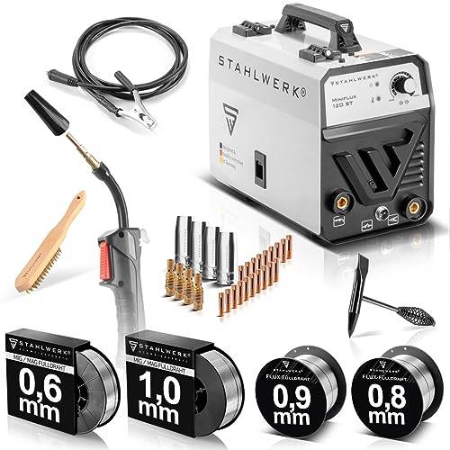 Bitte achten Sie in der Vergleichstabelle auf den Punkt „max. Schweißstrom”. Es gilt: Je höher der Schweißstrom, desto dickere Materialien können Sie schweißen.