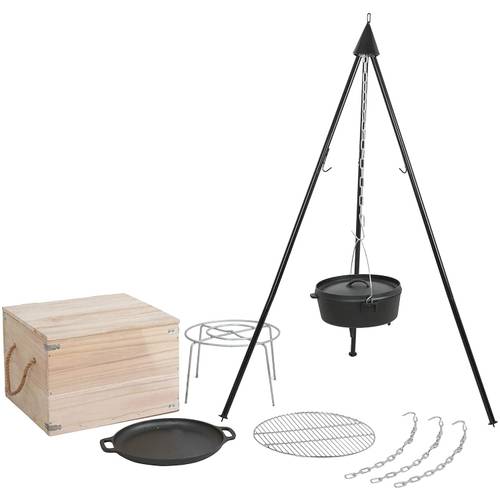 Ist die Kette des Schwenkgrills mit Haken ausgestattet, dann kann anstatt eines Grillrostes auch weiteres Kochgeschirr über der Feuerstelle genutzt werden. Ein Topf für den Schwenkgrill nutzen Sie beispielsweise zum Kochen von Suppen auf dem Feuer. In einer Pfanne für den Schwenkgrill wird das Grillgut gebraten anstatt gegrillt. Ist das Kochgeschirr im Lieferumfang nicht enthalten, finden Sie dieses auch als Zubehör für Schwenkgrills.