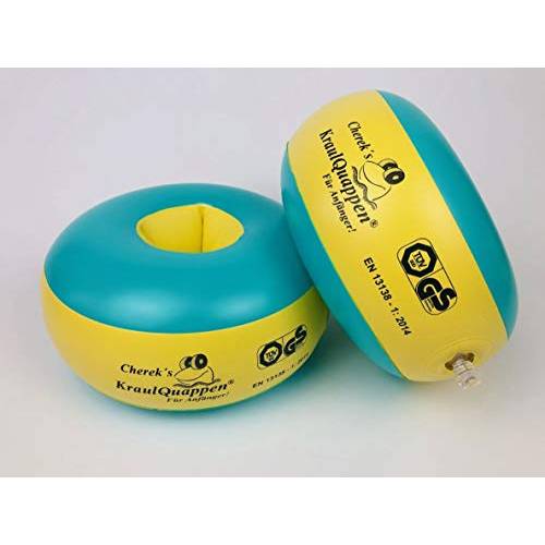 Cherek | Der Anbieter hat sich auf die sogenannten „Kraulquappen“ spezialisiert, die gehandhabt werden wie Schwimmflügel, optisch aber aussehen wie Mini-Schwimmringe. Diese haben in der Regel eine höhere Auftriebsleistung als die klassischen Schwimmflügel. Pluspunkt: Auch für Jugendliche (60 kg) und Erwachsene (90 kg) bietet der Hersteller Schwimmhilfen an. |
