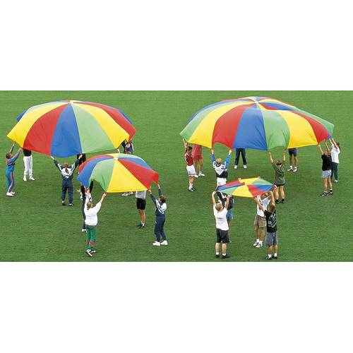 Schwungtücher sind luftige Spiel- und Therapiegeräte. Sie werden auch Fallschirmtücher genannt, weil früher alte und ausgediente Fallschirme als Spielzeug zum Einsatz kamen. Es gibt das Schwungtuch in klein oder groß. Je nach Raumgröße und Einsatzgebiet können Sie entweder ein Schwungtuch mit 3 m Durchmesser oder ein großes Schwungtuch mit 6 m Durchmesser erwerben. Viele Modelle haben verstärkte Griffe, um besonders für kleinere Kinder leicht greifbar zu sein. Das Schwungtuch wird auch bei Senioren in der Bewegungstherapie eingesetzt, um die Agilität zu fördern.