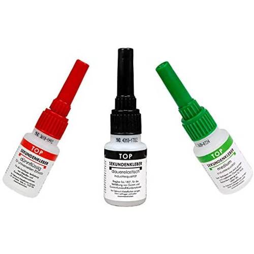 Bei der ersten Kategorie handelt es sich um Sekundenkleber, der flüssig ist. Er lässt sich dadurch gut in kleine Risse einbringen. Durch die flüssige Konsistenz des Sekundenklebers ist es jedoch auch schnell passiert, dass zu viel aus der Flasche kommt. Achten Sie darauf, dass überschüssiger Kleber schnell wieder entfernt wird. Sie können dafür etwas Wasser nehmen, um das Aushärten des Sekundenklebers zu beschleunigen und ihn dann abzukratzen. Es ist ein geeigneter Sekundenkleber für Kleinteile, findet beispielsweise Anwendung als Sekundenkleber im Modellbau oder als Sekundenkleber für Plastik.