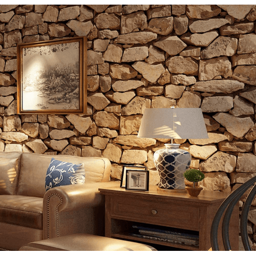 Die Steintapete ist eine selbstklebende Folie. Sie kann einfach auf die Wand aufgeklebt werden.