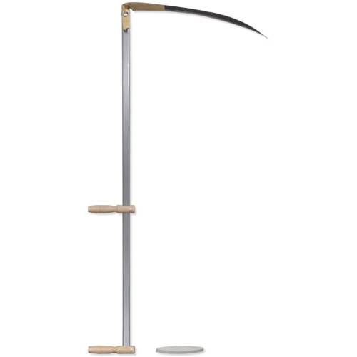 Sensen erhalten Sie in verschiedenen Ausführungen. Abgesehen von der Form des Sensenbaums (erhältlich als gerader Stiel oder mit einem Stiel in s-Form), seiner Länge (z. B. 140 cm) und dem Gewicht (z. B. 500 g) unterscheiden sich die Sensen auch in der Anzahl und Beweglichkeit der Griffe.