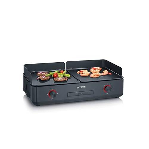 Sie sind ein Fan vom Grillen am Tisch mit der ganzen Familie? Dann ist ein Tischgrill mit einer flachen Grillfläche, auch Plancha-Grill genannt, für Sie interessant. Hier können mehrere Mitglieder gleichzeitig grillen und auch kleine Objekte, wie zum Beispiel Schalentiere, direkt auf die Fläche legen. Es gibt einige Severin-Tischgrills mit durchgehenden Grillplatten, die zudem noch antihaftbeschichtet sind.