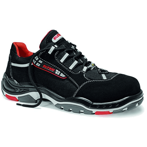 Dies sind die Haix-Sicherheitsschuhe „BLACK EAGLE SAFETY 40 LOW“ mit Zehenschutzkappe und Durchtrittschutz. Außerdem sind sie wasserdicht und antistatisch (ESD).