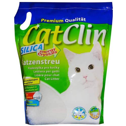 Mit 8 Litern Füllmenge stellt dieses CatClin-Silikatstreu eine komplette Neufüllung für ein Katzenklo dar.