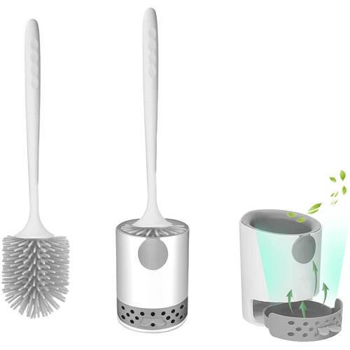 Wenn Sie eine klassische Toilettenbürstenform bevorzugen, sollten Sie eine Silikon-Klobürste mit rundem Bürstenkopf kaufen. Diese ähnelt äußerlich sehr den klassischen Toilettenbürsten, unterscheidet sich jedoch aufgrund der Silikonborsten.
