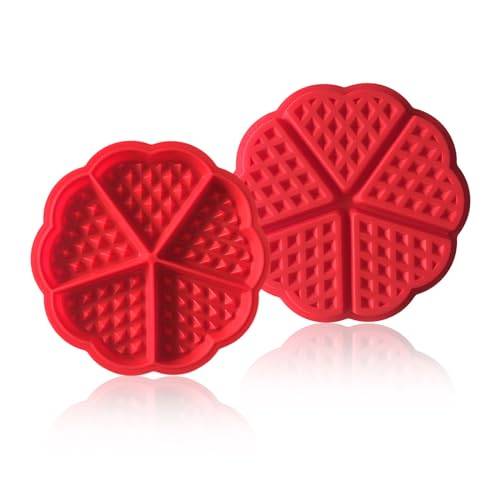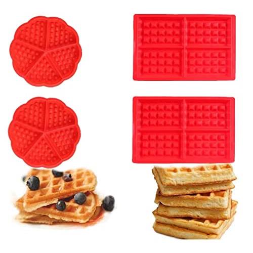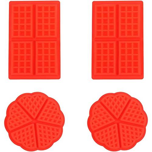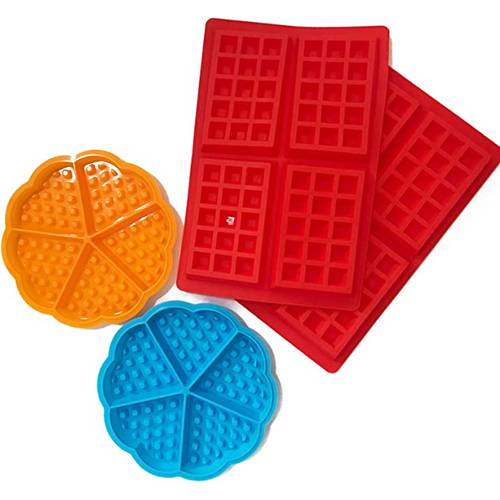 Am häufigsten zu finden ist bei Silikon-Waffel-Backformen die klassische Form, welche Sie auch von Waffeleisen kennen: Eine „Blume“, aus welcher sich fünf Waffel-Blüten bzw. herzchenförmige Waffeln ergeben. Darüber hinaus finden Sie oftmals rechteckige Waffelformen, aus welchen Sie vier Waffeln herstellen können.