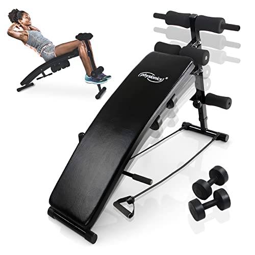 Ergänzen lässt sich die sinnvolle Sit-Up-Bank dann mit Kurzhanteln, die man heute in verschiedenen Ausführungen erstehen kann. Ideal sind Modelle, auf die man verschiedene Gewichte stecken kann.