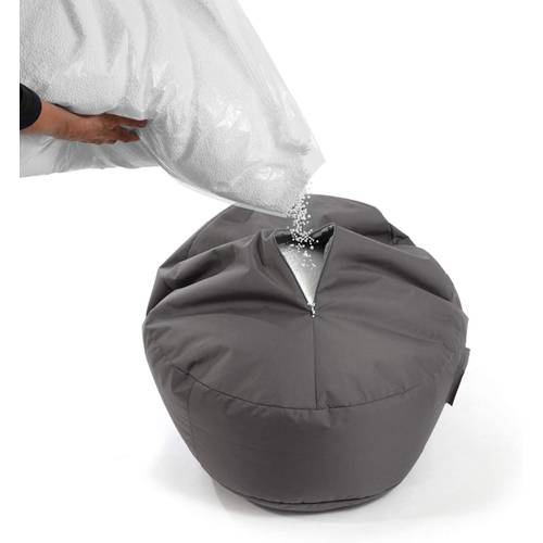 Die andere Alternative einer Sitzsack-Füllung ist wie eine Art Kissen-Bezug. Hier werden die EPS-Perlen nicht direkt in den Sitzsack gefüllt, sondern in eine Hülle, die dann in dem Sitzsack positioniert wird. Die Tüte mit der Füllung für den Sitzsack sollte nicht vollständig aufgerissen werden. Stattdessen reicht es völlig aus, die Packung an nur einer Ecke zu öffnen. Halten Sie die Nachfüllpackung zum Nachfüllen der Sitzsack-Füllung möglichst genau über die Öffnung der Sitzsack-Hülle, um diese mit den EPS-Perlen zu füllen. Das Verfahren nach der Befüllung gleicht dem der ersten Methode.