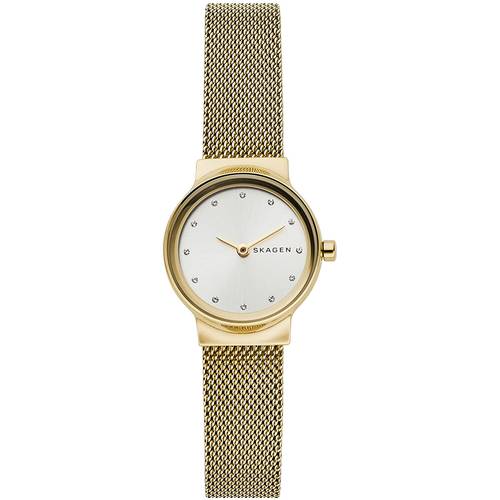 Milanaise-Armbänder aus feinmaschigem Edelstahl-Geflecht wirken besonders edel – wie zum Beispiel bei dieser Skagen-Damenuhr in Gold.