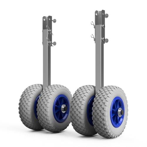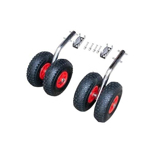 Die Räder sind in verschiedenen Größen erhältlich. Dabei richten sich die Maße nach dem Durchmesser und der Breite der Räder. Bei großen Schlauchbooten sollten Sie sich auch entsprechend für größere Reifen entscheiden.