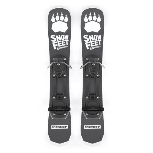 Während die Marke Bladefun mit dem Modell Woody 99 cm (inkl. Sicherheitsbindung Tyrolia) misst und damit nahezu an die Grenze dessen stößt, was in Bezug auf die Länge noch als Snowblade gilt, treibt es der Hersteller Snowfeet mit ihren Mini-Skis in die andere Richtung auf die Spitze: Die Mini-Skis von Snowfeet sind kaum länger als ein Schuh. Mit teilweise gerade einmal 44 cm Länge gelten die Modelle unter den eh schon kurzen Snowblades als wahre Short-Snowblades.
