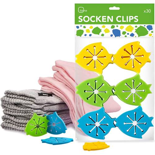 Entscheiden Sie sich für Sockenklammern mit einem integrierten Aufhänger, können Sie Ihre Socken nach dem Waschen mitsamt der Klammer an die Wäscheleine hängen. Dann brauchen Sie die Sockenklammern nicht abzunehmen. Danach können Sie Socken dann sogar mitsamt der Sockenklammer in den Schrank legen.