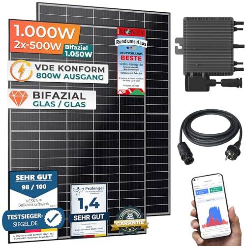 Platz 1 | Veska Premium-Balkonkraftwerk | ca. 349 € | 22 kg | 2 x 500 W | ||