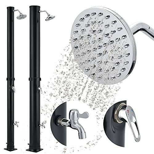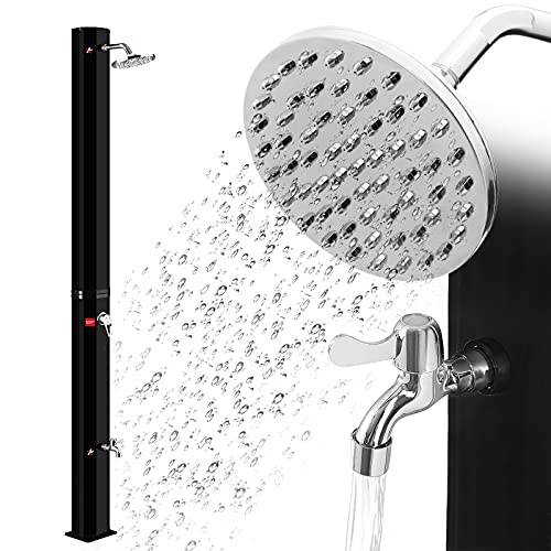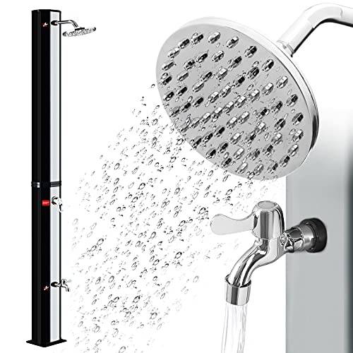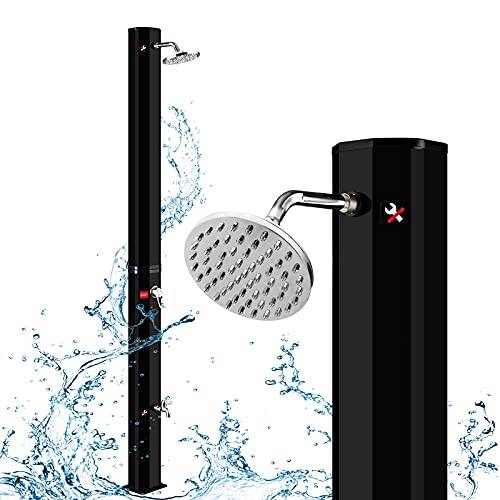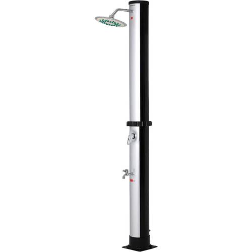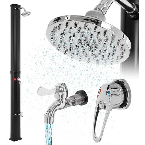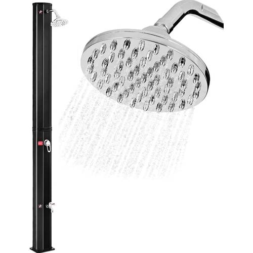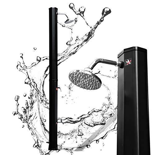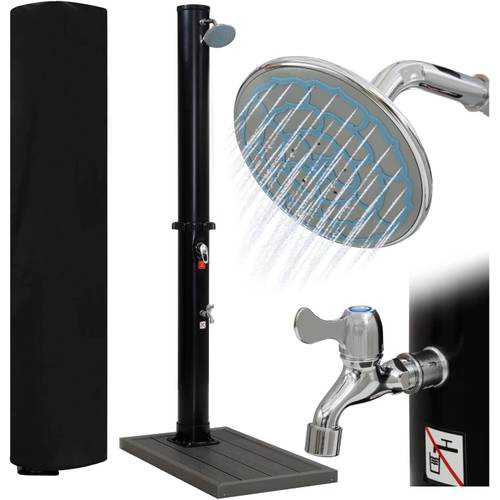 Sie finden übrigens auch 35-Liter-Solarduschen als Pool- oder Gartendusche mit Fußdusche. Der zweite Wasserhahn, meist für kaltes Wasser, ist besonders praktisch, wenn Sie sich die Hände oder Füße waschen oder Ihre Gießkanne auffüllen möchten. Auch Kinder spielen gern mit dem Wasser und befüllen z. B. Ihr Spielzeug.