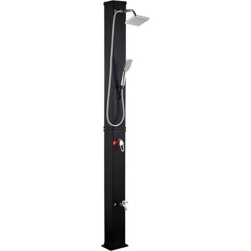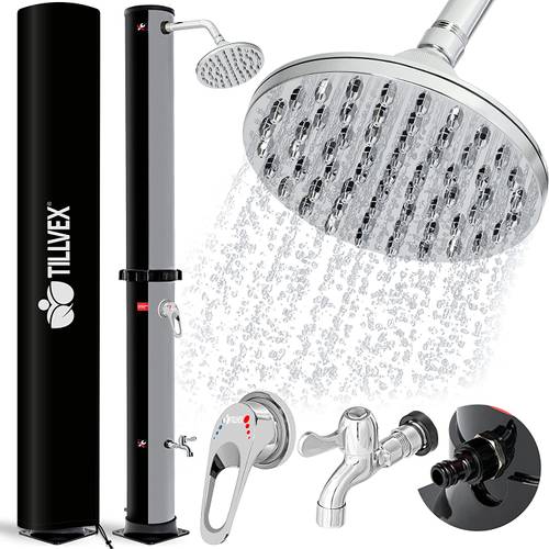 Damit die maximale Temperatur erreicht werden kann, müssen Sie in der Regel eine bis drei Stunden warten. Dabei ist es wichtig, dass die Sonne auf die Dusche strahlt. Genügt Ihnen eine niedrigere Temperatur, kann die Dusche auch vorher genutzt werden.