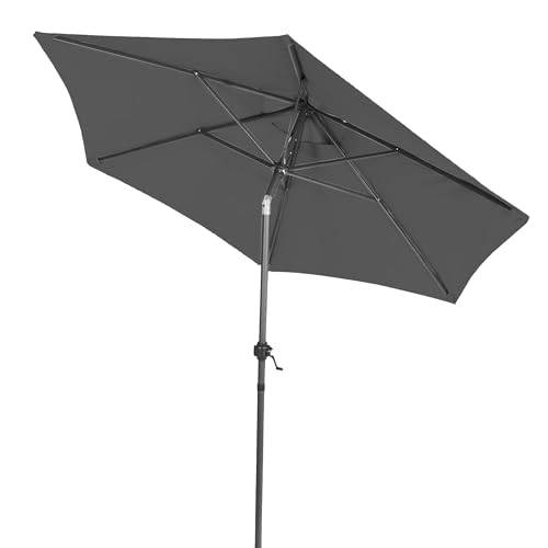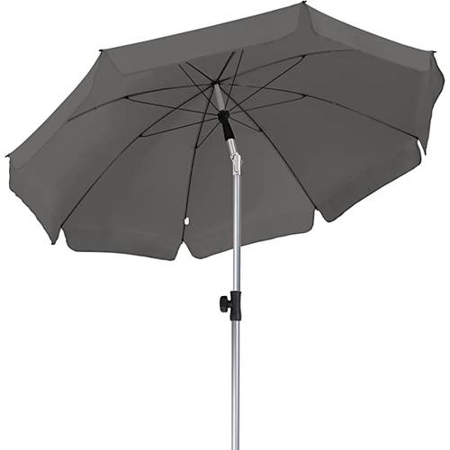Die besten 200-cm-Sonnenschirme haben einen UPF-Wert von 50+, was bedeutet, dass nur noch 2 % der UV-Strahlen durch die Bespannung dringen können. Auf diese Weise können Sie Ihre Haut am besten vor Sonnenbrand schützen. Ein 200-cm-Sonnenschirm in Anthrazit absorbiert in der Regel mehr UV-Strahlen als ein Modell in Weiß.