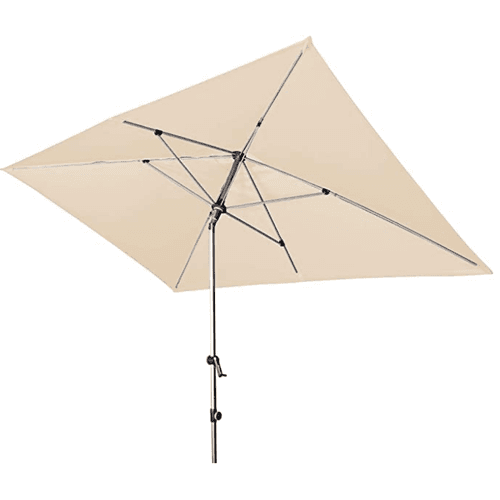 Tipp: Um besonders flexibel zu sein, sollten Sie sich einen 3-m-Sonnenschirm kaufen, der knickbar bzw. neigbar ist. Auf diese können Sie den Schirm je nach Sonnenstand perfekt ausrichten.