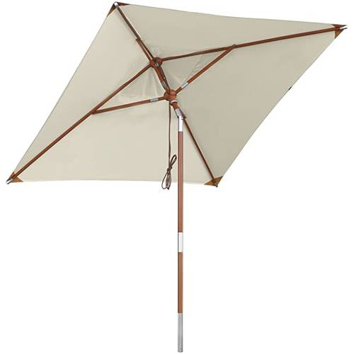 Weniger robust als Sonnenschirme aus Harthölzern sind Schirme aus heimischen Hölzern wie Kiefer oder Lärche. Sie sind weicher und daher weniger witterungsbeständig. Um witterungsbeständig zu werden, werden diese Sonnenschirme häufig behandelt und mit einem Schutzanstrich versehen. So finden Sie beispielsweise Holz-Sonnenschirme in weiß oder anderen Farben lackiert.