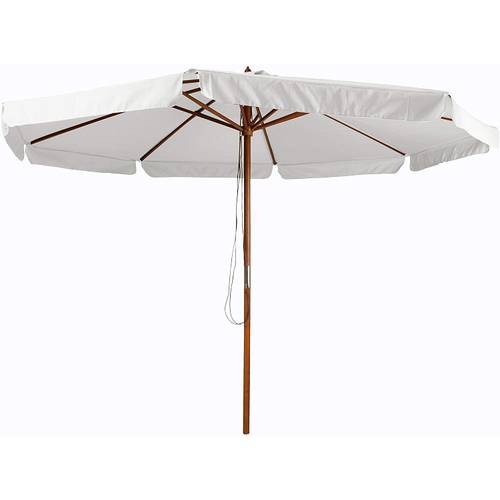Im Landhausstil sind Holz-Sonnenschirme klassisch rund und der Rand ist mit einem Volant ausgestattet. Helle Modelle wie ein Holz-Sonnenschirm in Beige oder ein weißer Sonnenschirm aus Holz wirken sehr freundlich und absorbieren die Hitze nicht so schnell. Daher kann es unter einem Holz-Sonnenschirm in Beige kühler sein als unter einem Sonnenschirm aus Holz in dunklem Grün. Bunte Modelle setzen aber farbliche Akzente und können nach der Farbgestaltung Ihres Gartens oder einer Terrasse in der Gastronomie gewählt werden.