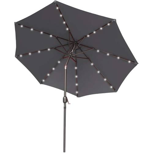 Wie wir feststellen, befindet sich die Beleuchtung bei diesem Haveson-Sonnenschirm mit LED in den Streben unter dem anthrazitfarbenen Polyestergewebe.