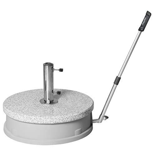 Achtung: Ein Sonnenschirmständer mit Rollen und Hebel ist sehr selten, sodass Sie sicherstellen sollten, dass Sie das Gewicht des Ständers selbst oder mit Hilfe bewegen können.