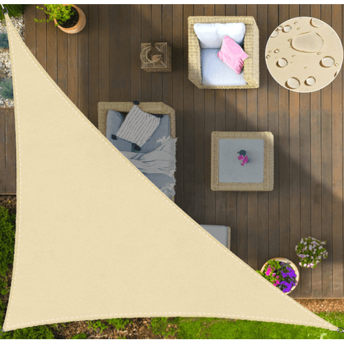 Wasserdichte Sonnensegel in Dreieckform bestehen meist aus beschichtetem Polyester. Sie halten auch starken Regen zuverlässig ab, benötigen jedoch ein Gefälle, damit sich keine Wasserbeulen bilden. Wasserabweisende Segel bieten bei leichtem Regen Schutz, lassen aber bei Dauerregen Wasser durch. Wasserdurchlässige Modelle aus HDPE oder PE sind nicht regenfest, trocknen aber sehr schnell und bieten den besten Luftaustausch.