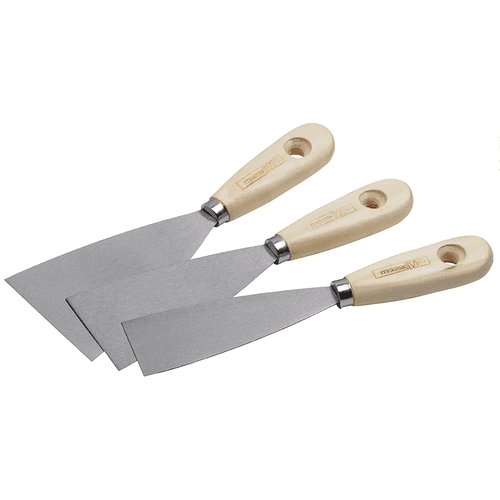 Dieses Foto zeigt uns ein Parkside-Spachtel-Set mit drei Spachteln in unterschiedlicher Breite für Renovierungsarbeiten.