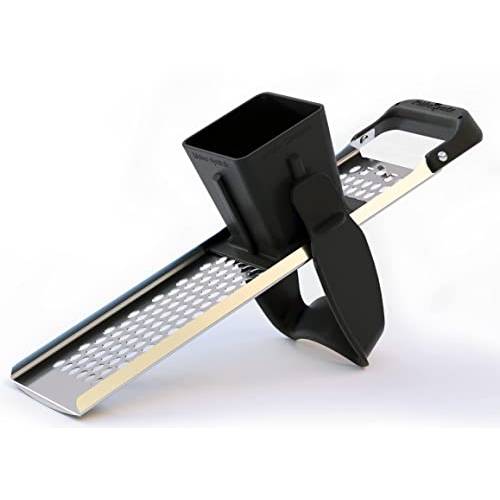 Bei diesem Gefu-Tradizione-Spätzlehobel sehen wir einen Kunststoffbehälter, andere Varianten sind auch in diesem Bereich aus Edelstahl.